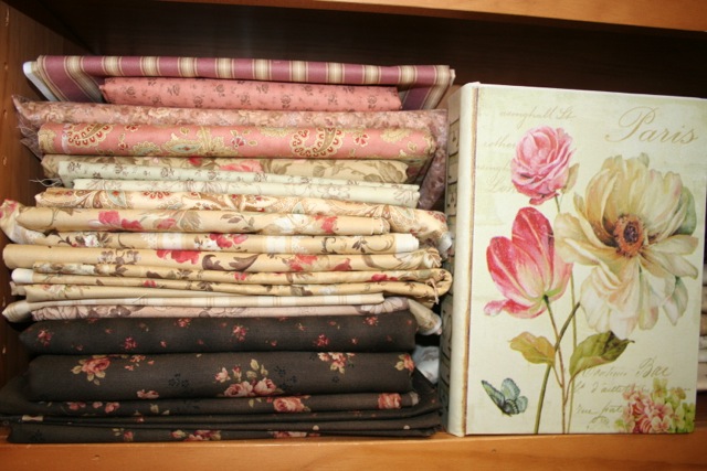 I started cautiously buying a few fat quarters with tiny flower sprigs, but of course it did not work. After all these years, I still get it wrong. So it was back to the books and internet to refresh my knowledge on colour, value, tone, scale, texture, blenders, and zingers. That took me back to the quilt shop. Several trips later, and my stash is blooming with a glut of roses, lilies, daisies, big blowzy peonies, and swags of nameless flowers.