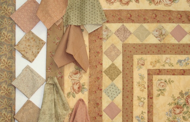 This month, I thought I’d give you an idea of the progress I have made since choosing the theme for my exhibition. Selecting the fabrics for the quilts was an obvious first step since the walled garden theme called for colour and flowers – something that is rare in my stash.