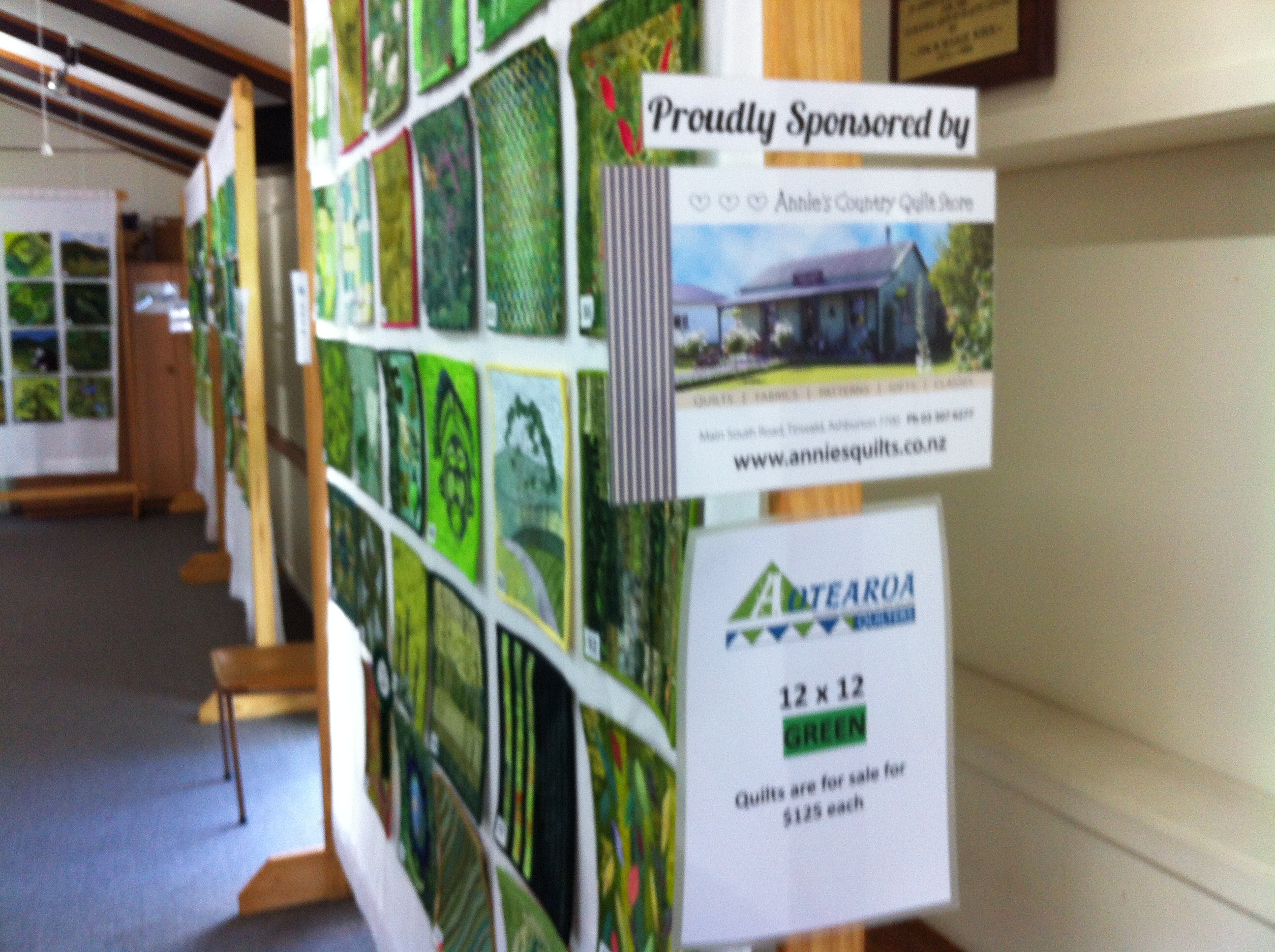 Sponsored by Annie’s Country Quilt Store  The 12 x12 Colour Challenge – GREEN – was displayed at the Tauranga Patchwork and Quilters Group Open Day.