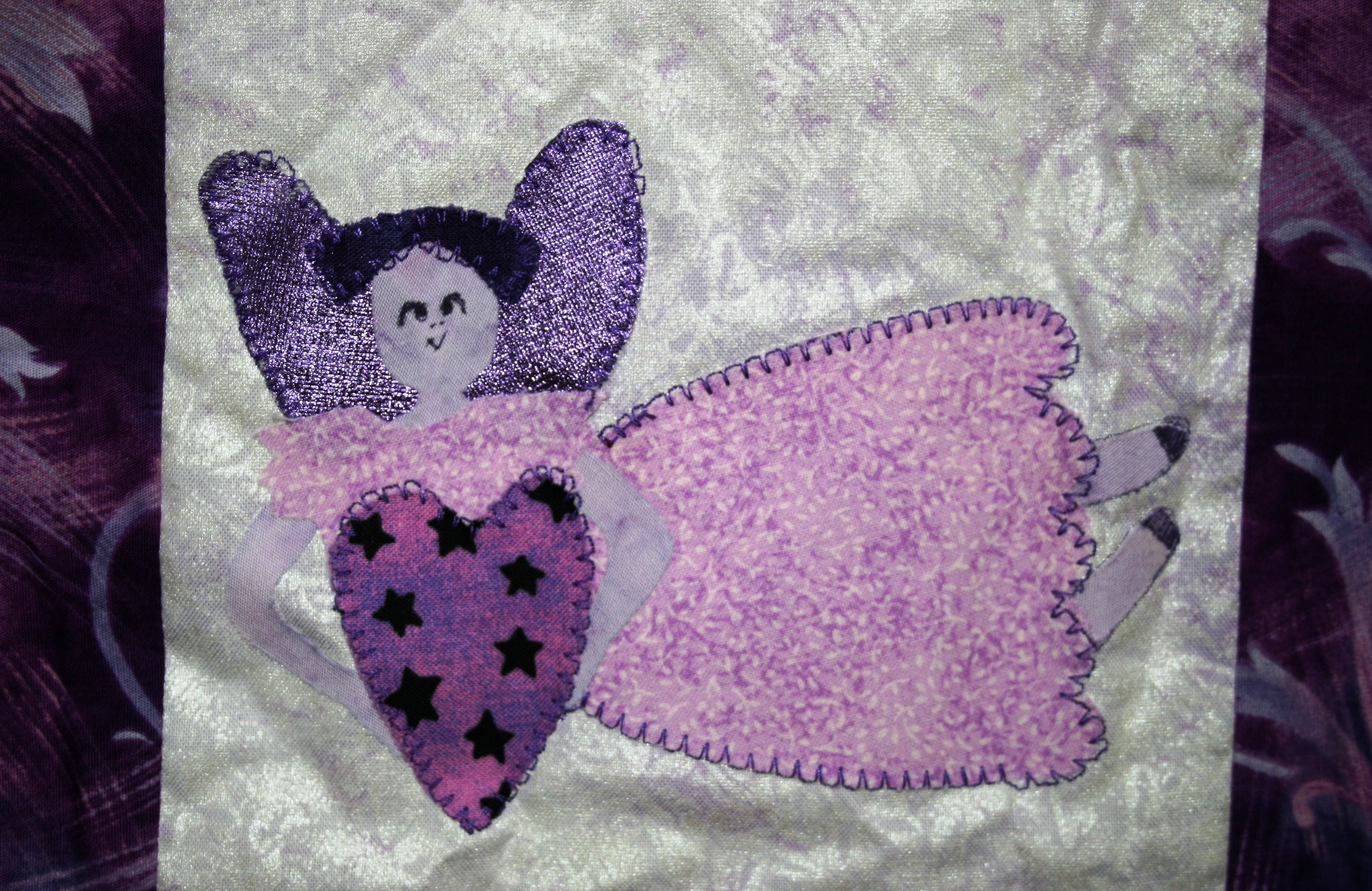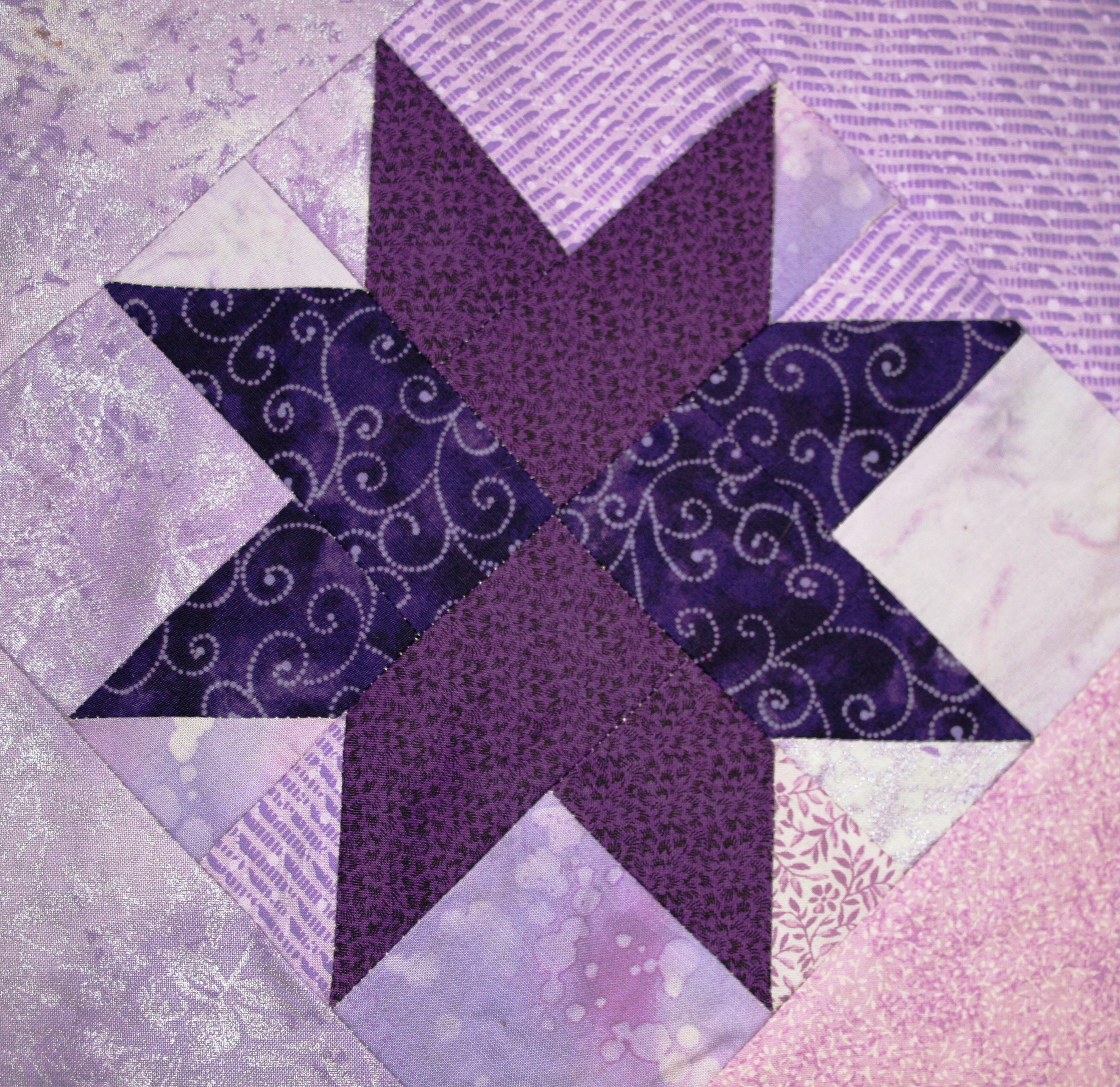 Create a 12 inch by 12 inch quilt that is predominantly PURPLE.